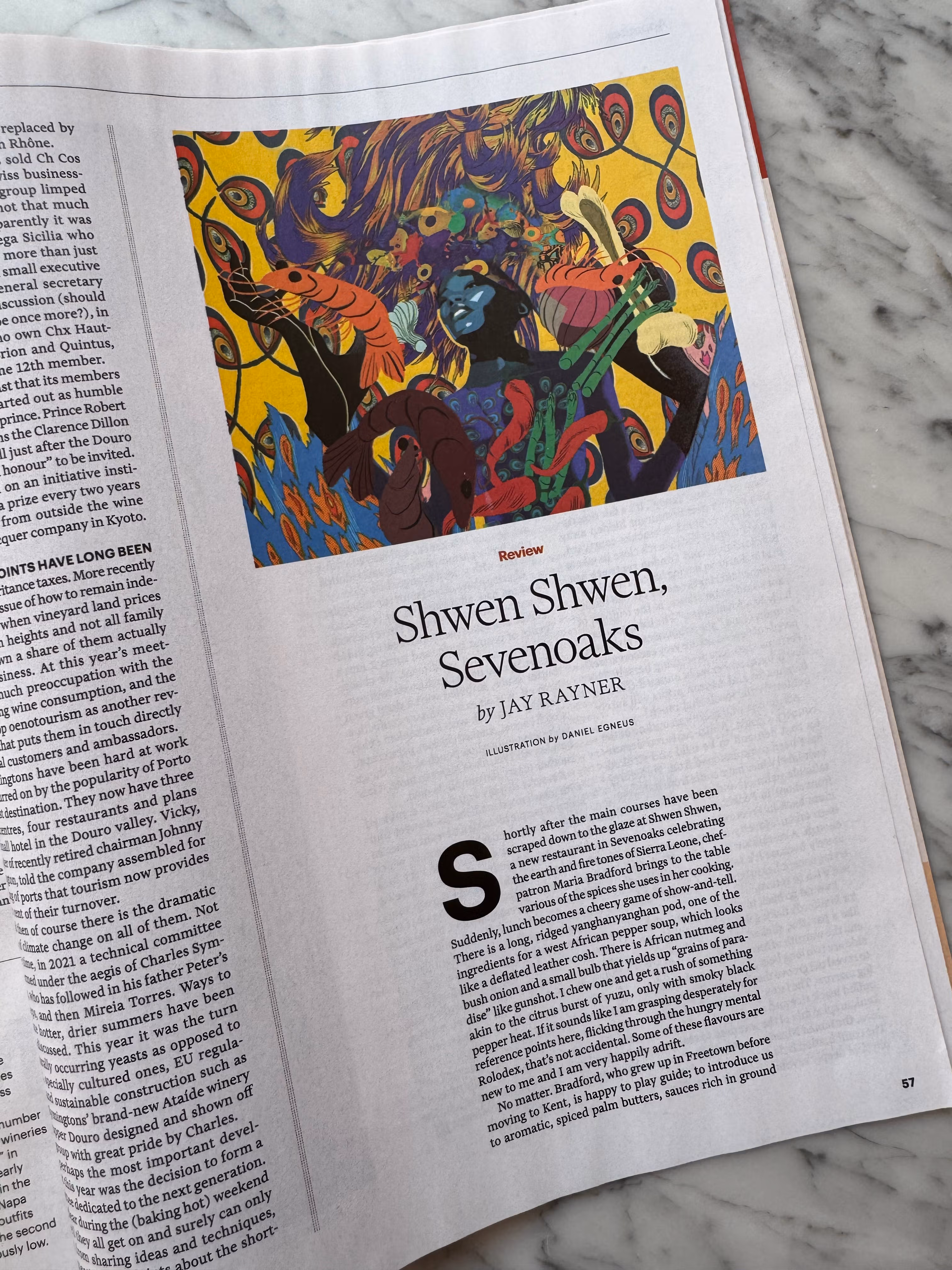 Review Shwen Shwen, Sevenoaks by Jay Rayner Illustration by Daniel Egnéus