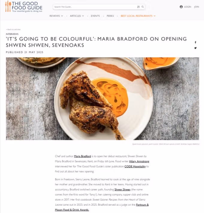 Chef and author Maria Bradford is to open her debut restaurant, Shwen Shwen by Maria Bradford in Sevenoaks, Kent, on Friday 6th June. Food writer Hilary Armstrong interviewed her for The Good Food Guide's sister publication CODE Hospitality to find out all about her new opening.